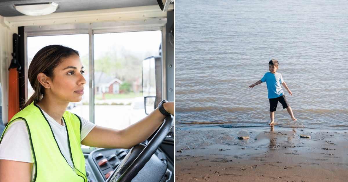 Bus driver finishing her route watched in horror as a young boy ran towards a lake. She knew she had to act instantly